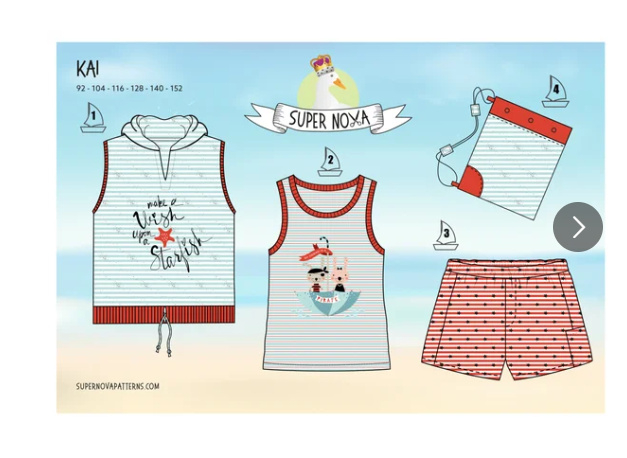 Geschikt voor tricot-stoffen/Das Schnittmuster ist für Jersey-Stoffe geeignet/ Use knit fabric for this pattern/Ce patron est pour des…€ 9,95 € 5,00 - Super Nova naaipatroon - Kai 92 tm 152