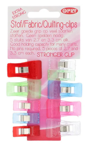 Deze stofklemmen of quilting clips Extra Strong van Opry zijn een prima alternatief voor kopspelden. De kunststof clips zijn ideaal om de drie lagen van een quiltsandwich bij elkaar te houden. Ook bij gewoon…